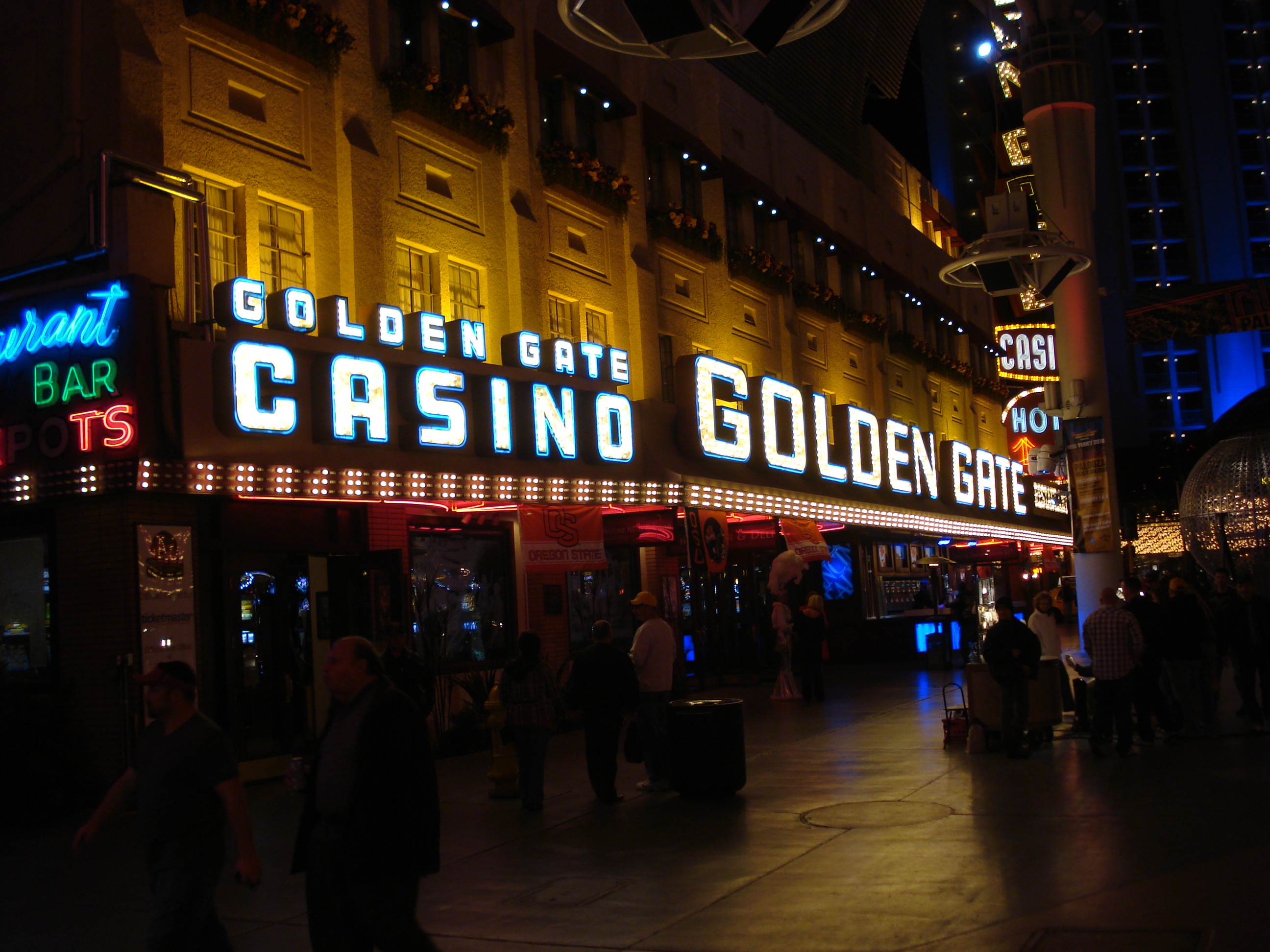 | The Golden Gate Casino and Hotel is the first hotel erected in Las Vegas in 1906 shortly after the railroad station had been established and Las Vegas was a stop on the railway west. Of course, it looks nothing like it originally looked and has gone through many name changes through the years but it still stands. We had dinner here. | ||||