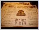 | The menu for the Bay City Diner, a San Francisco theme restaurant inside the Golden Gate Casino. The Hotel and Casino opened the same year of the San Francisco earthquake and fire. Outside the casino on the street was a steel cage that would provide motorcycle entertainment that amazed us. See the video. Also above us was the four block long video display rang out Don McLean's American Pie. | ||||