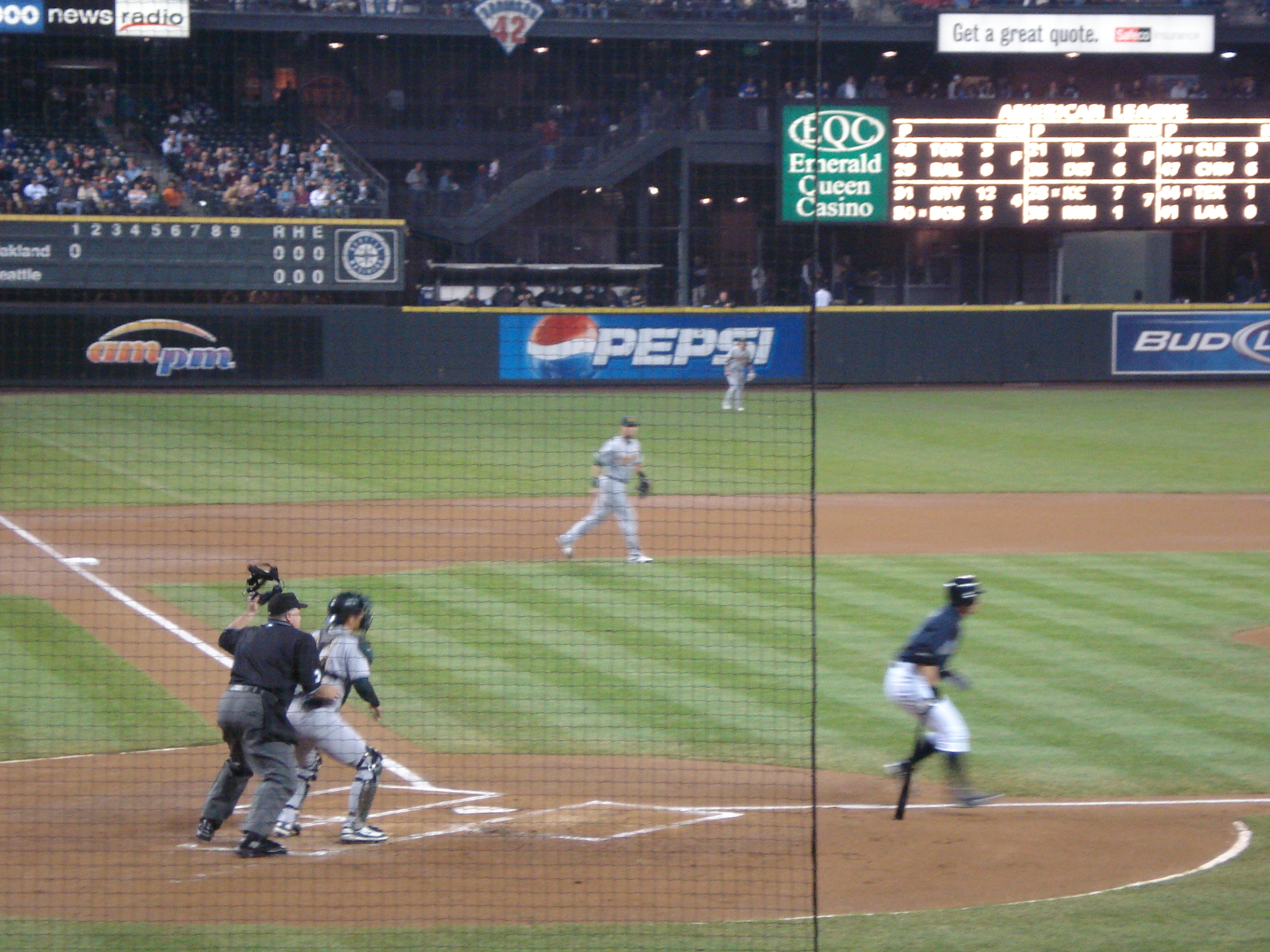| Finally sitting in row 18 behind home plate at Safeco Field. This marks my 20th baseball stadium and leaves only 10 to go. With the addition of Oregon and Washington to my states list, I now only have Alaska left. | ||||