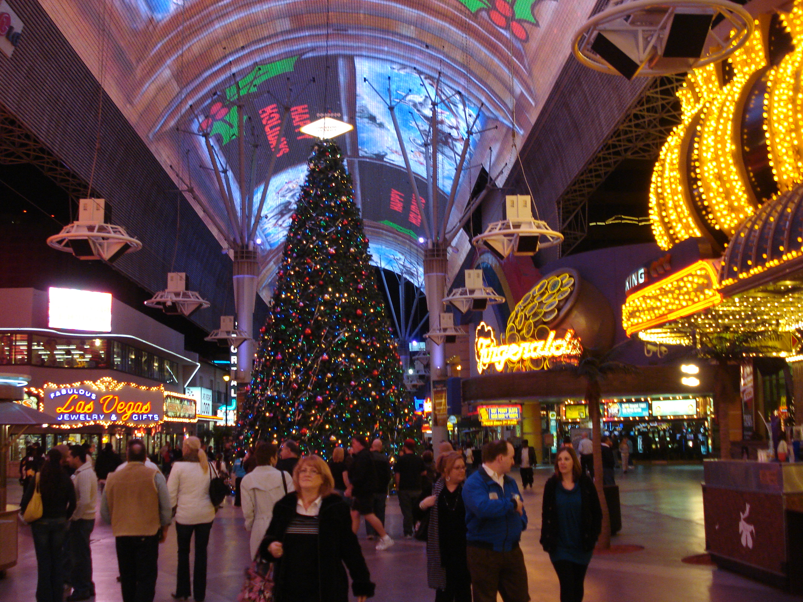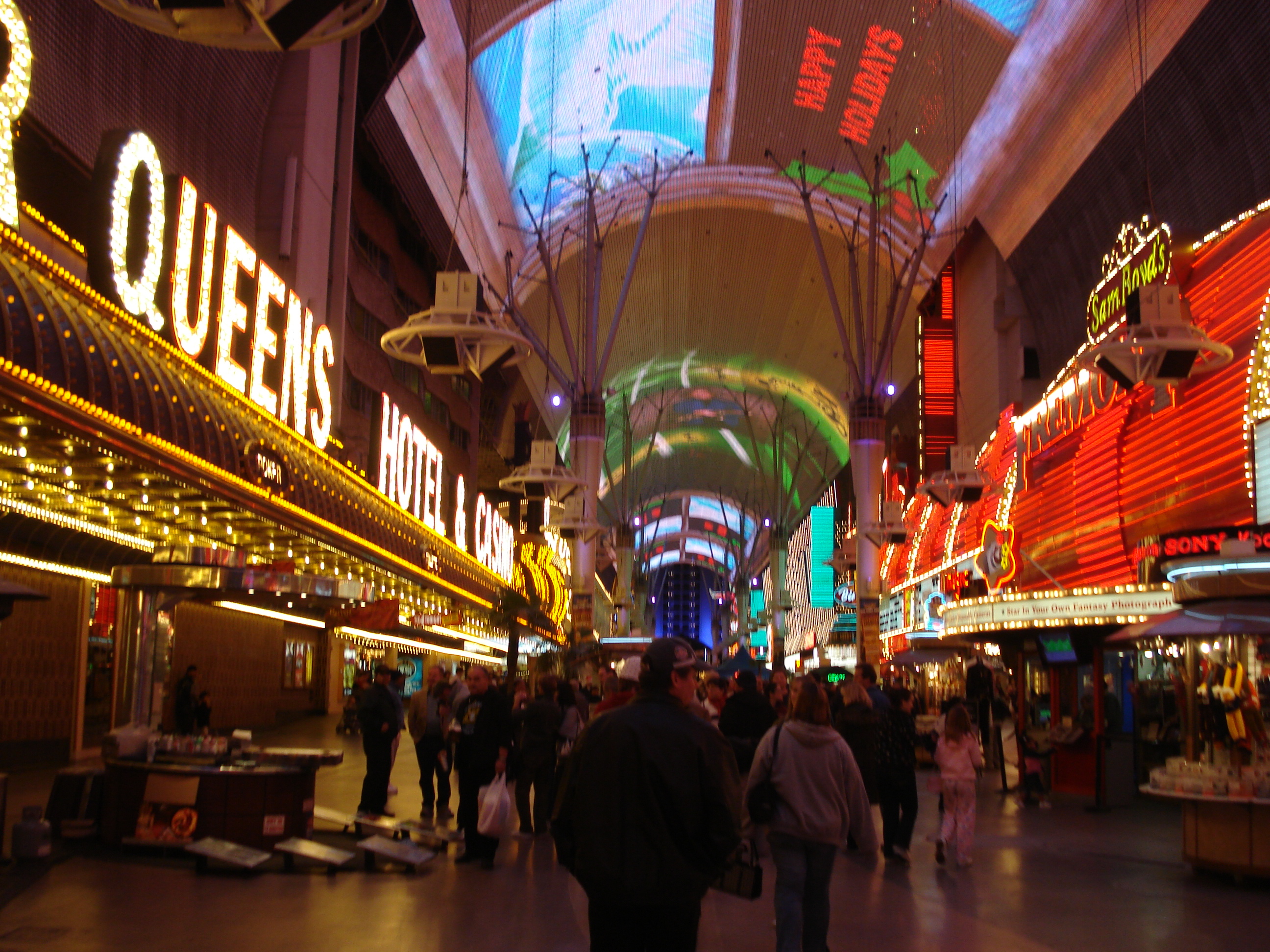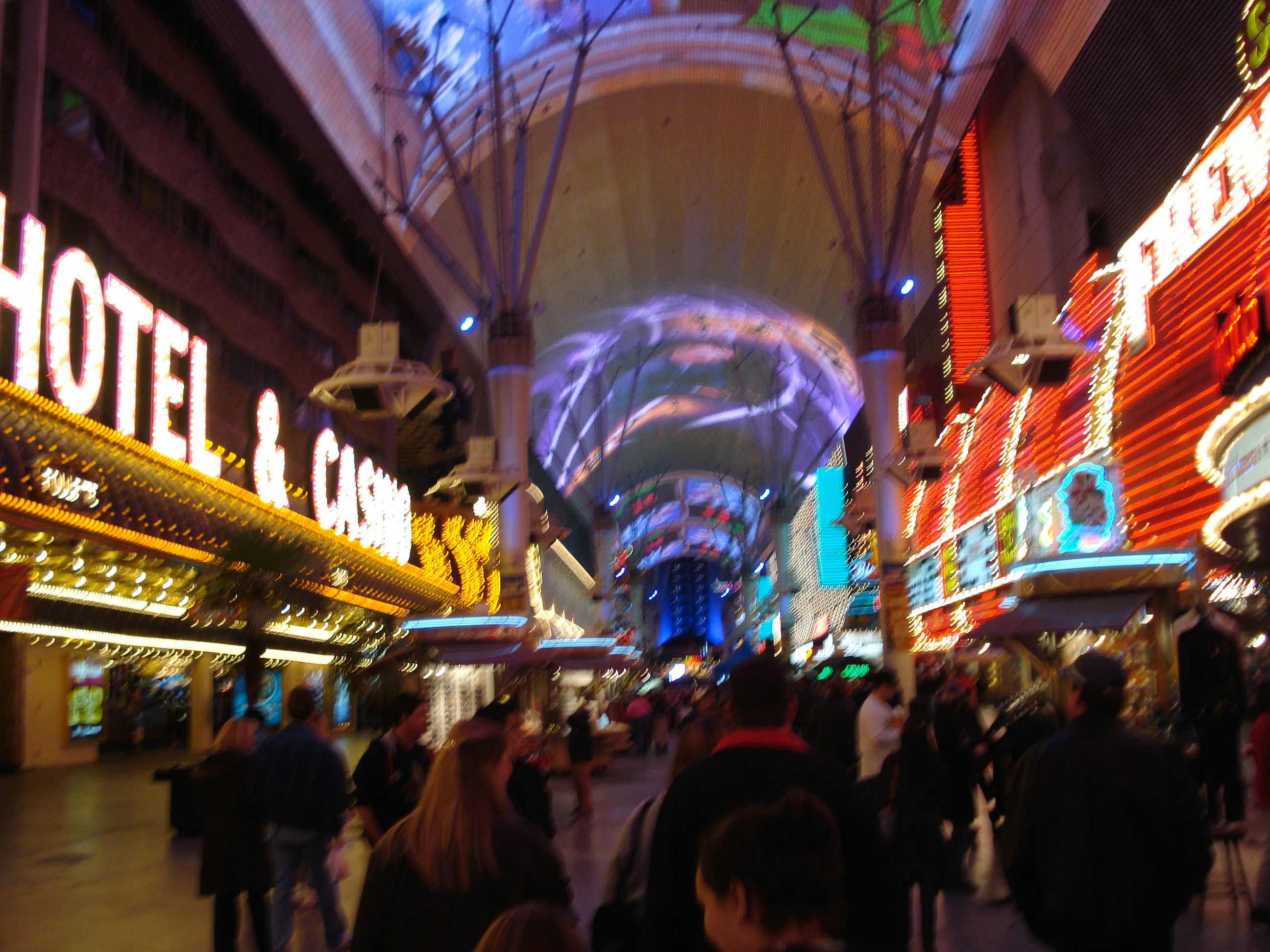 | I had never been to Downtown Las Vegas before. I didn't even know it was such an amazing place, that it is the very beginning of the city nor that it had such a spectacular attraction as the four block long overhead video system. Very impressive, and I highly recommend spending some time here. In fact, I think staying in a hotel here would be preferable to staying on the Strip. Much less traffic and congestion and plenty of entertainment, much of it for free. | ||||