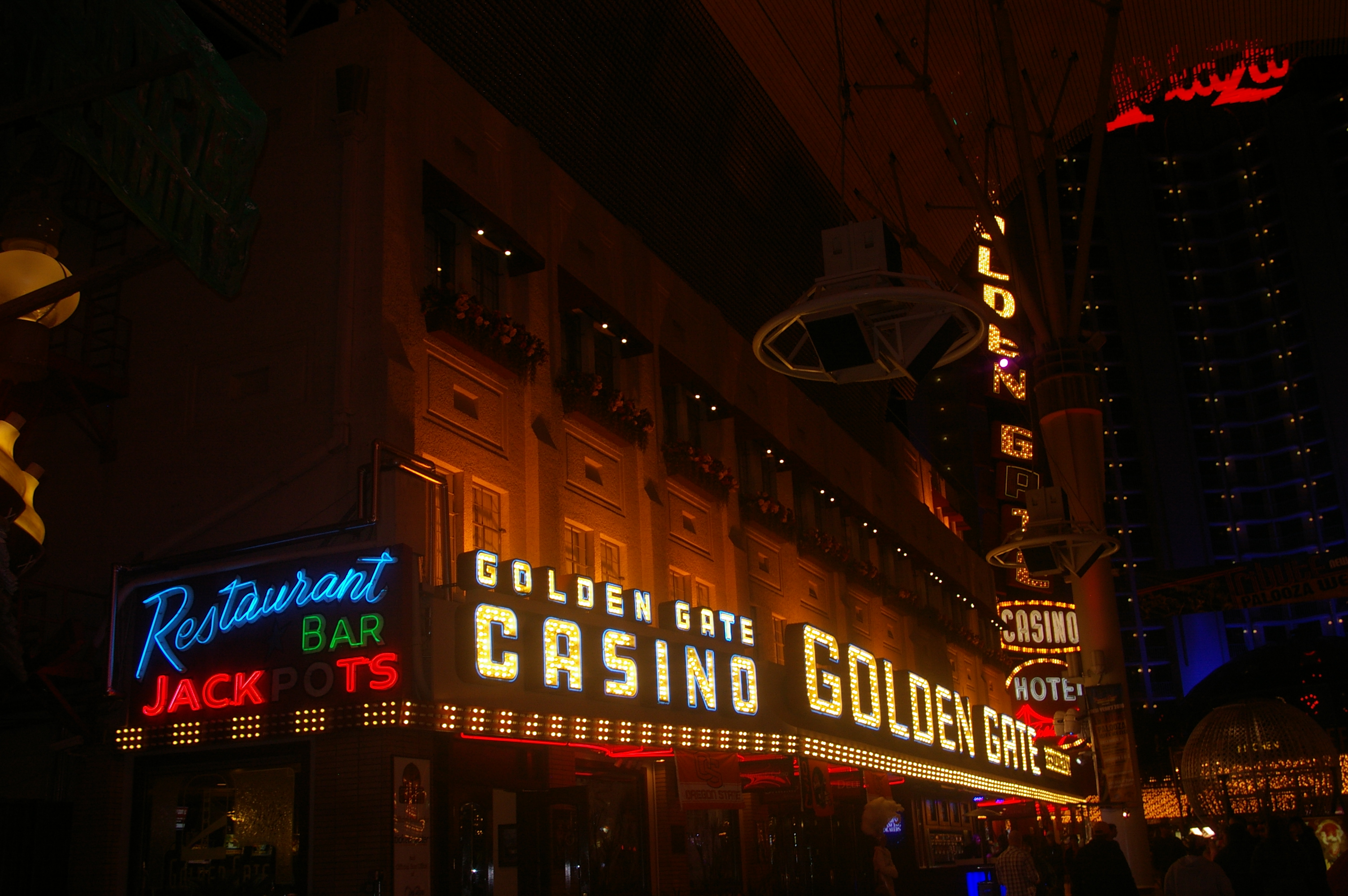 | The Golden Gate Casino and Hotel is the first hotel erected in Las Vegas in 1906 shortly after the railroad station had been established and Las Vegas was a stop on the railway west. Of course, it looks nothing like it originally looked and has gone through many name changes through the years but it still stands. We had dinner here. | ||||