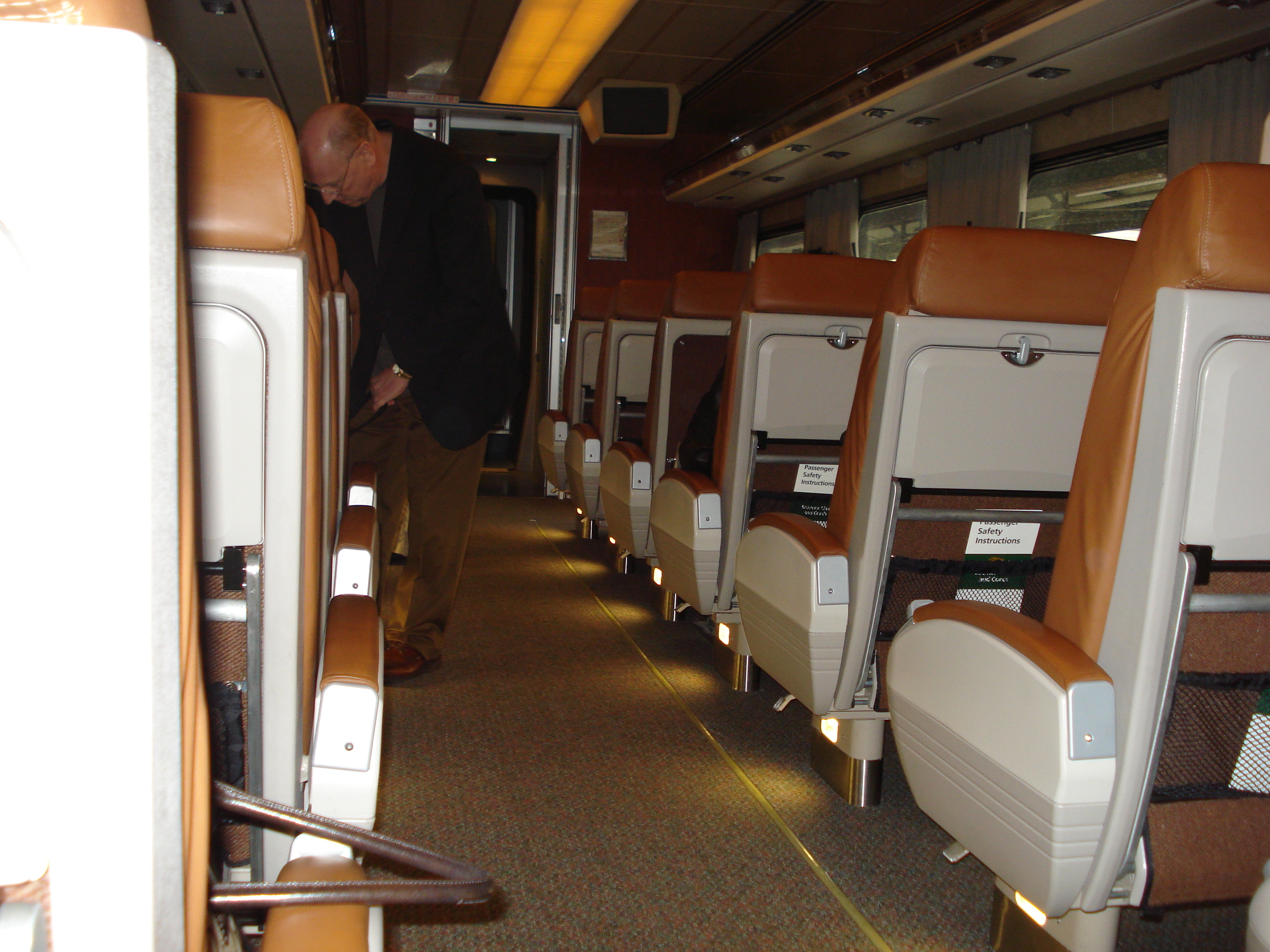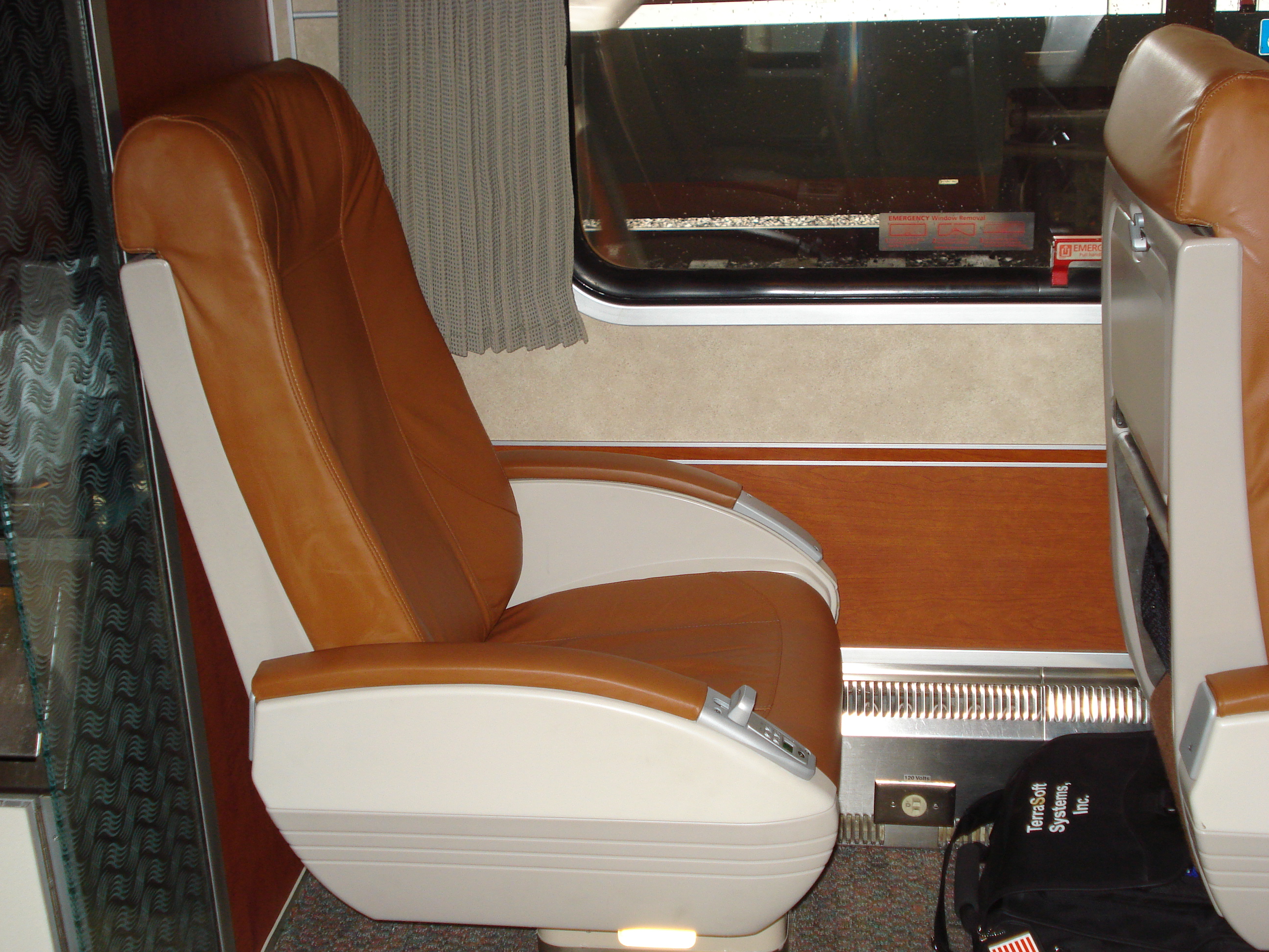 | I rode Business Class on the Casacades and it was an impressive train. Leather seats and only three seats across. I sat in a single seat which was very comfortable and gave me an unobstructed view of the scenery. | ||||