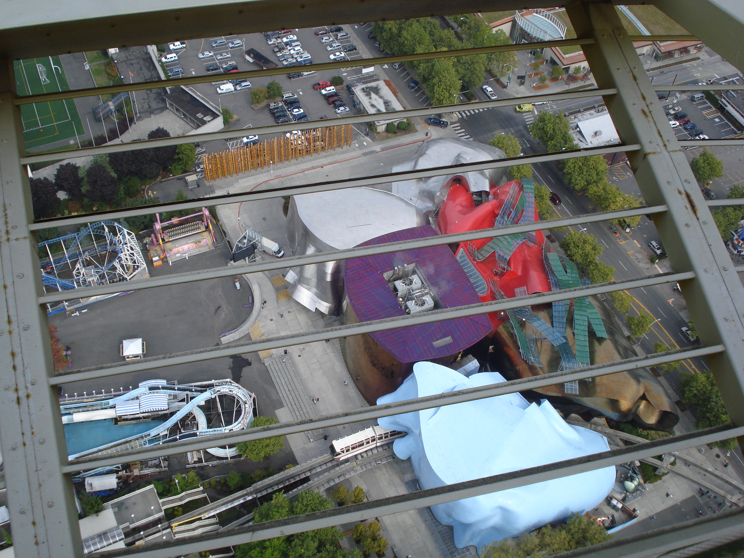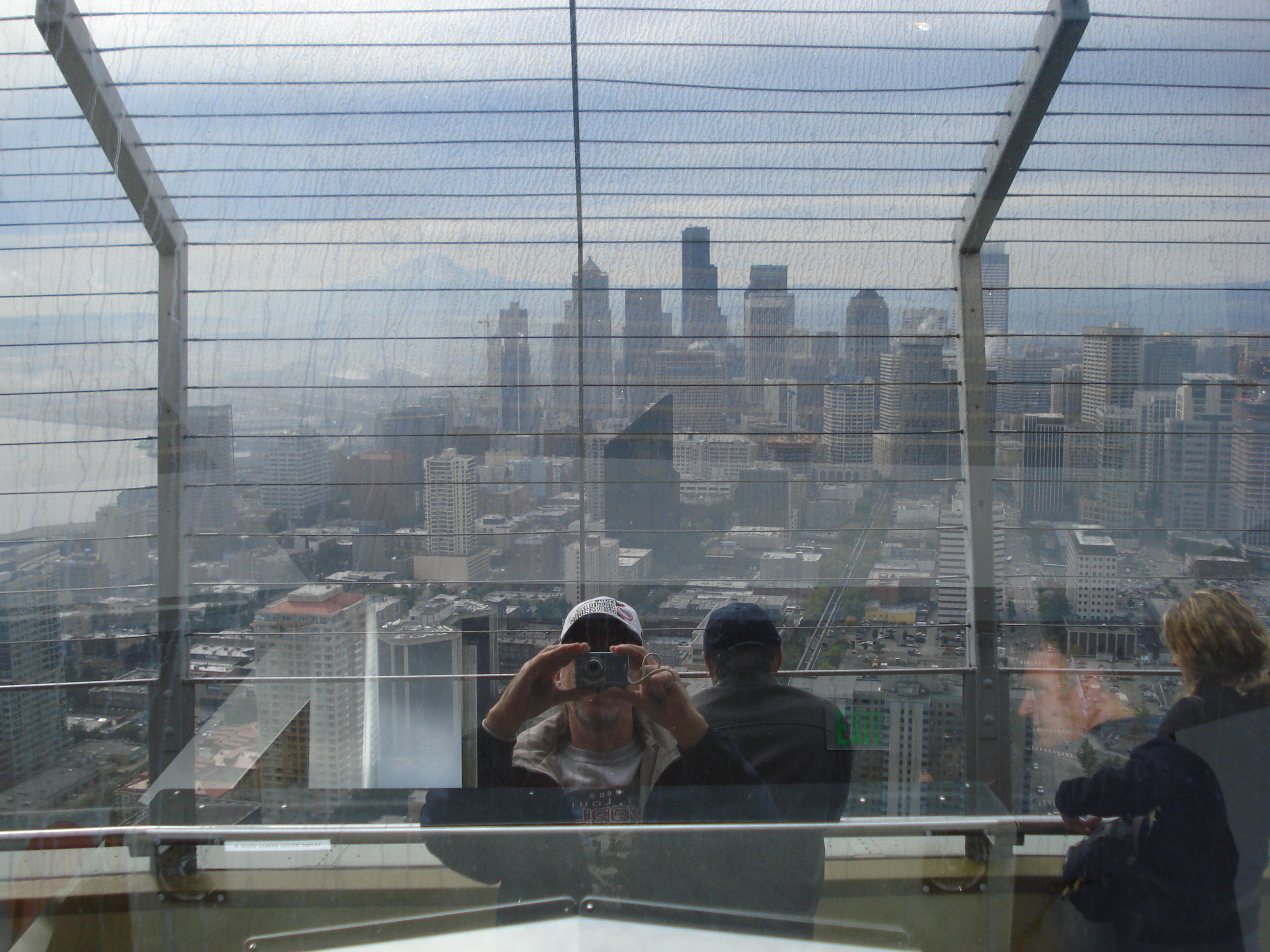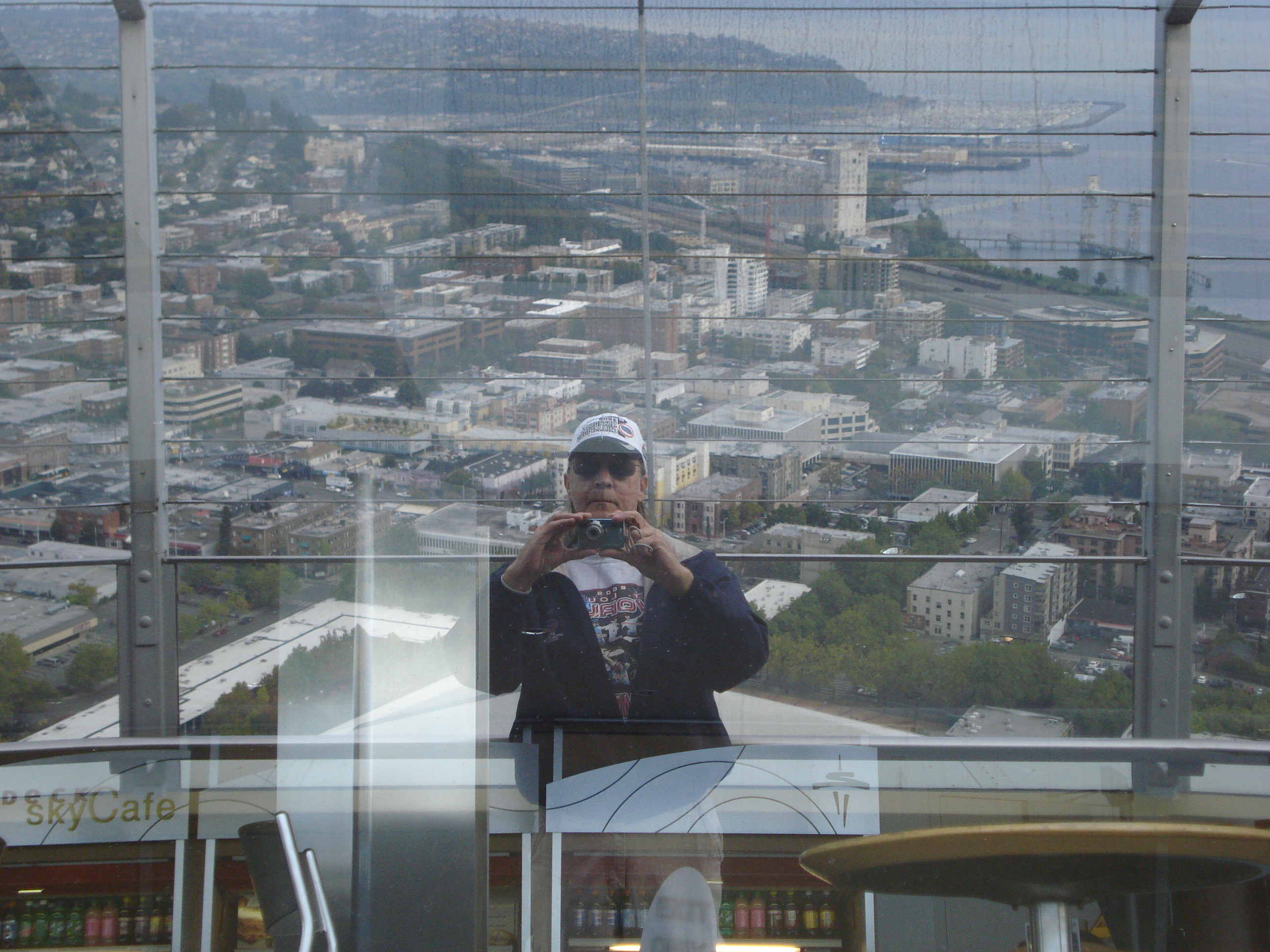 | The Space Needle. Built in 1962 as part of the Seattle World's Fair it stands 520 feet tall, about 50 stories, has glass elevators that take you to the top for magnificent views of surrounding areas. There is a restaurant up there as well, but get your eservations in early, it is a popular place to eat. I did some shopping after thr trip up in the shops below and of course, I bought more pens for my best friend Shannon. :<) | ||||