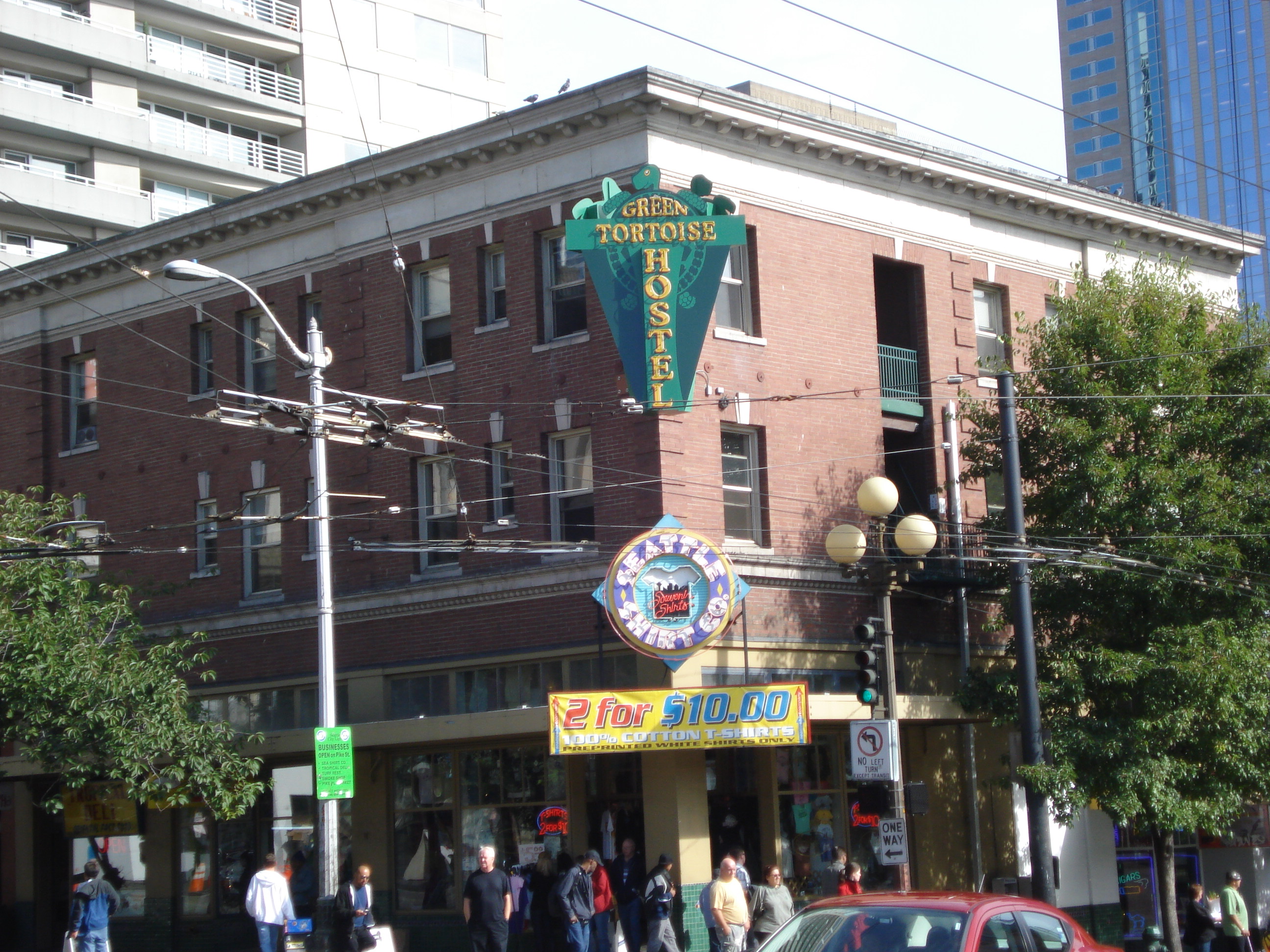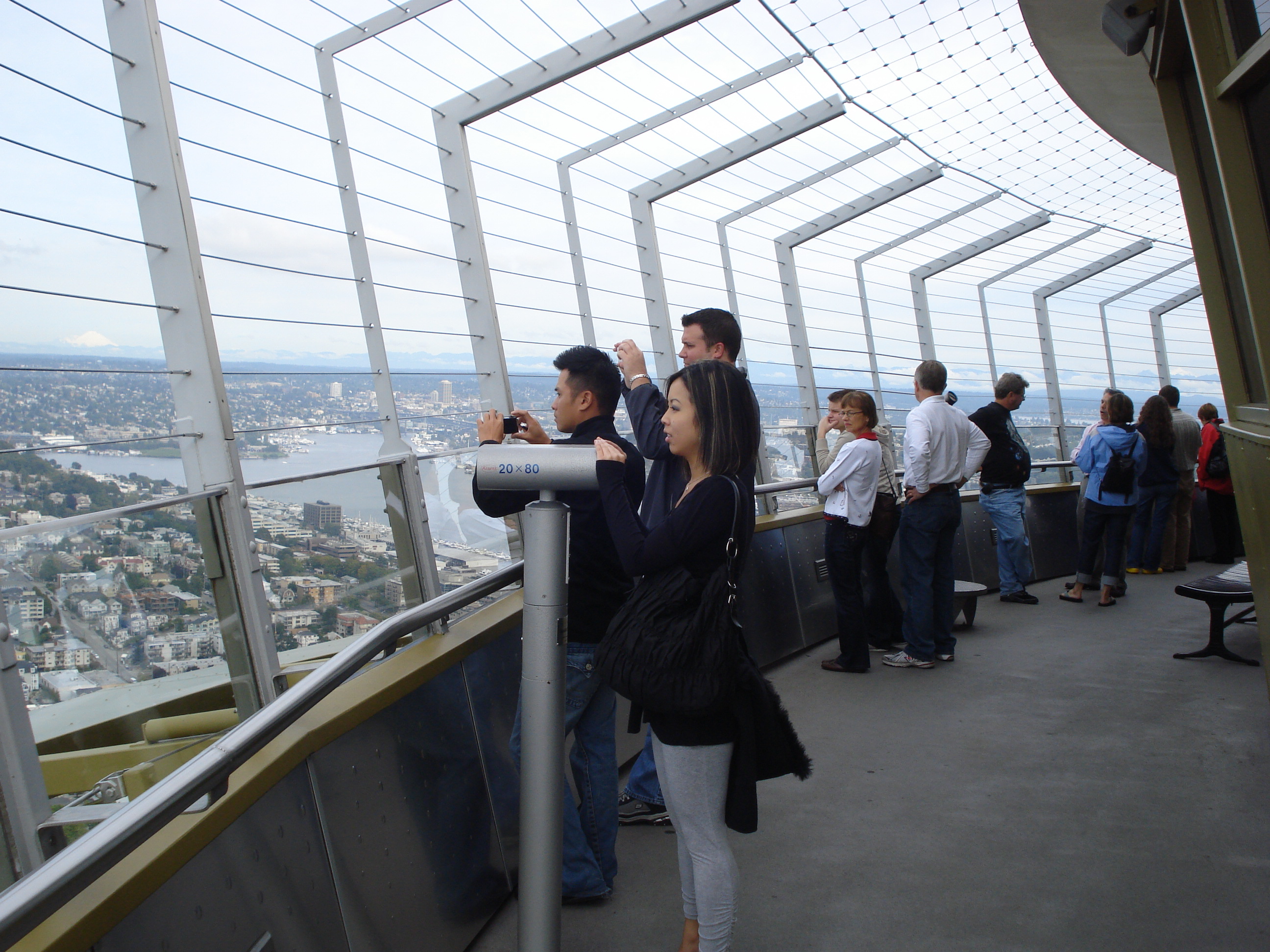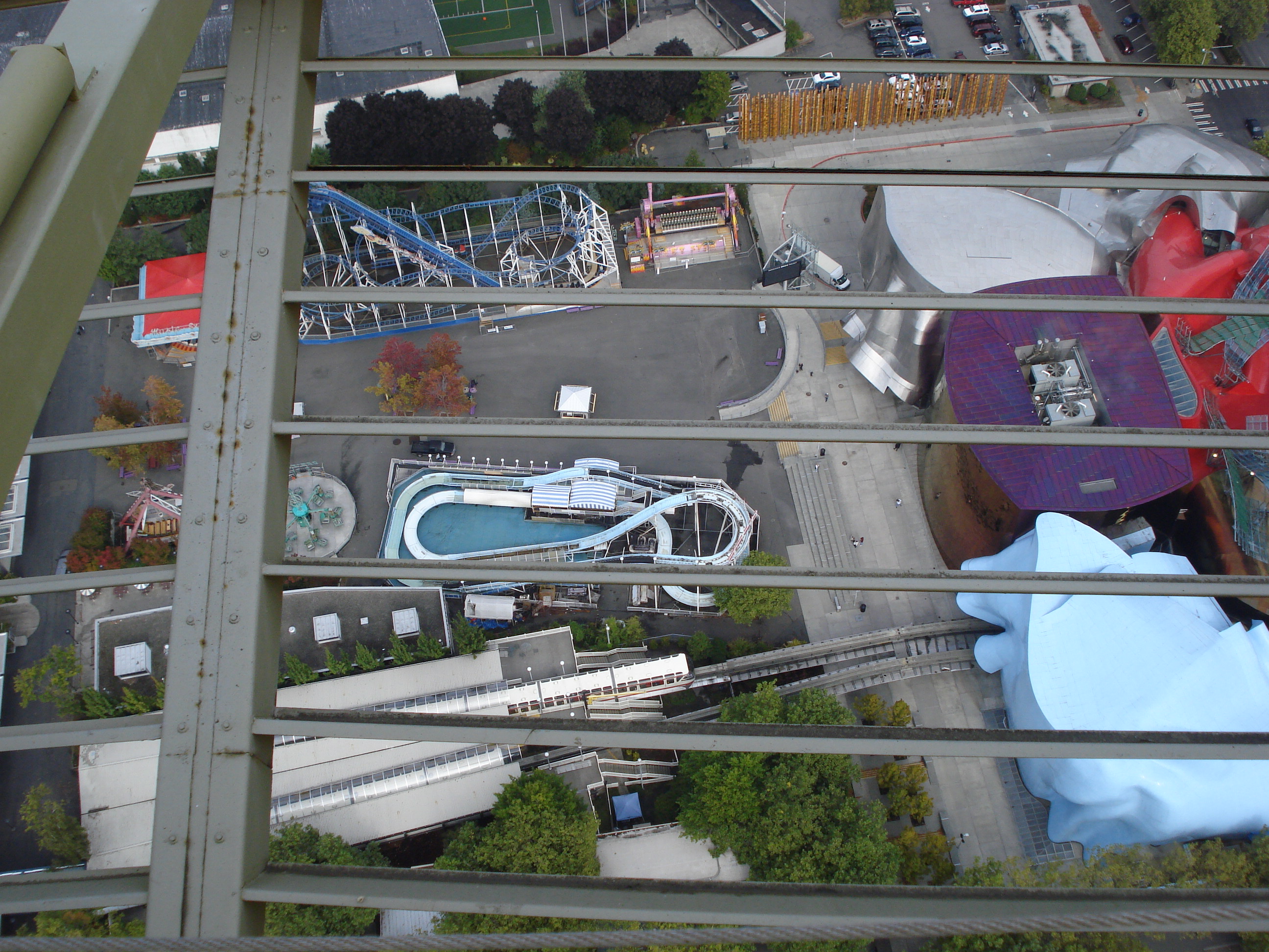| The Space Needle. Built in 1962 as part of the Seattle World's Fair it stands 520 feet tall, about 50 stories, has glass elevators that take you to the top for magnificent views of surrounding areas. There is a restaurant up there as well, but get your eservations in early, it is a popular place to eat. I did some shopping after thr trip up in the shops below and of course, I bought more pens for my best friend Shannon. :<) | ||||