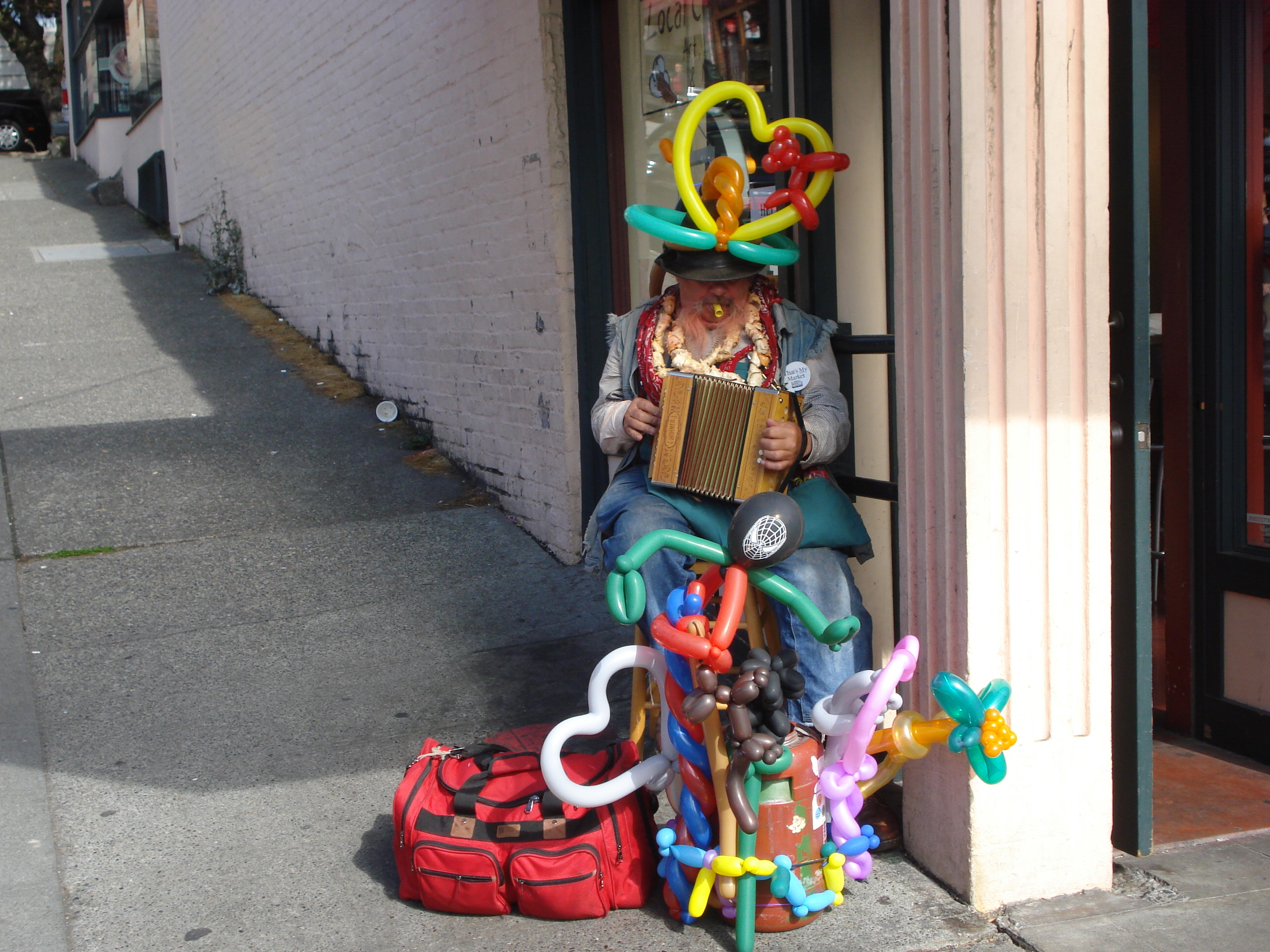 | A happy piano player singing inn the streets. Wonder where the piano goes at night? | ||||