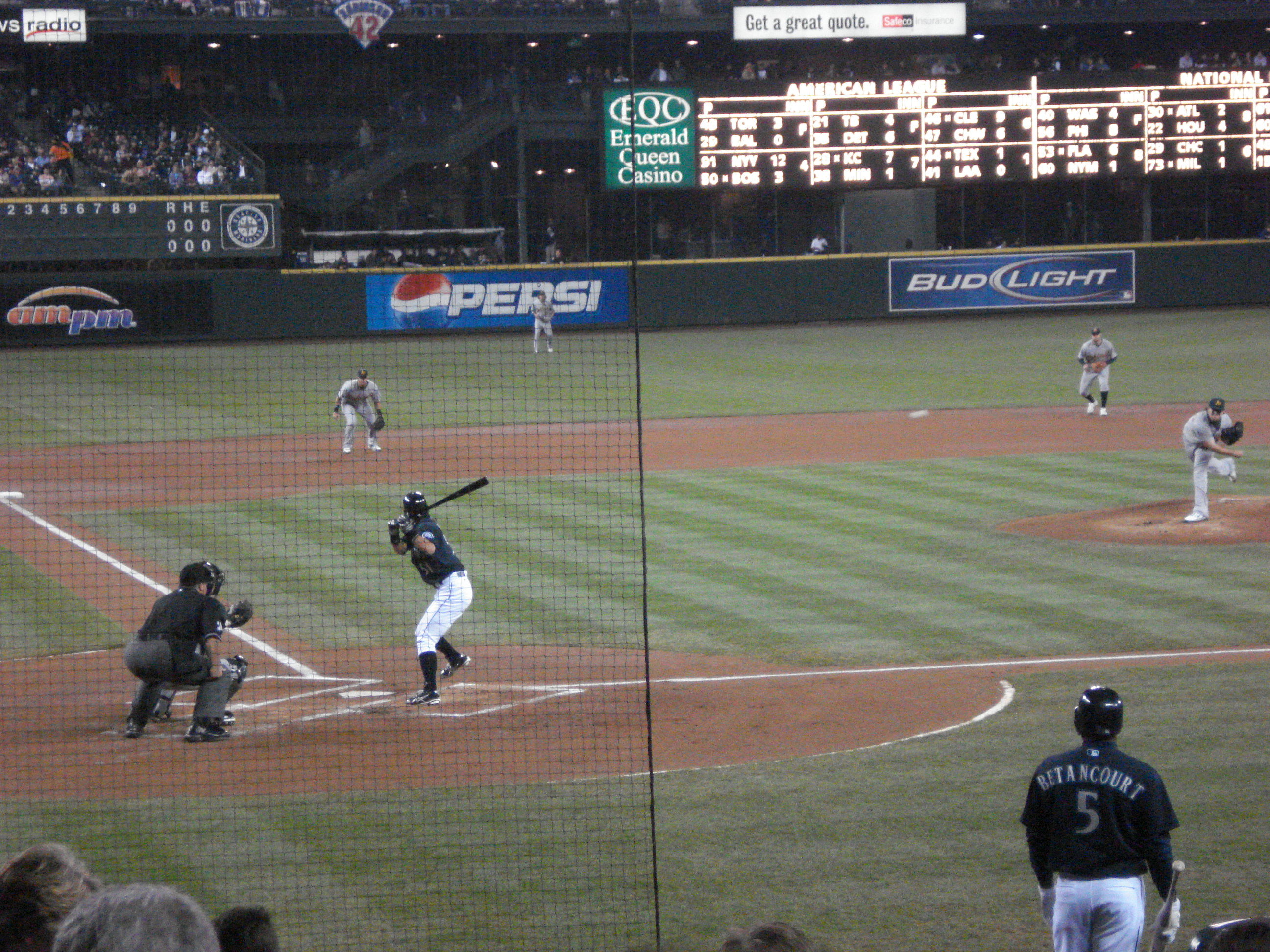 | Finally sitting in row 18 behind home plate at Safeco Field. This marks my 20th baseball stadium and leaves only 10 to go. With the addition of Oregon and Washington to my states list, I now only have Alaska left. | ||||